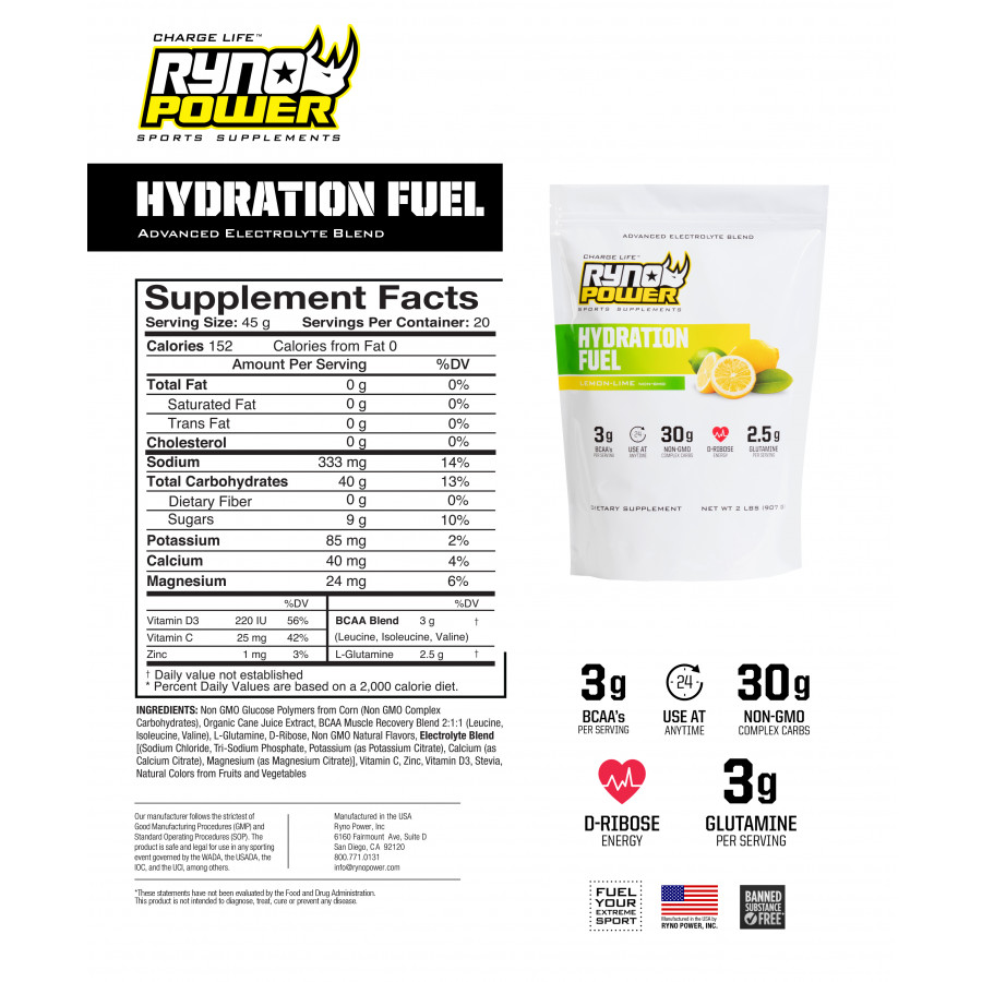 Packat med BCAA: er, aminosyror som minskar muskeltrötthet och förbättrar återhämtningstiden, innehåller Hydration Fuel också glutamin för att hjälpa till att balansera muskelåtervinning.