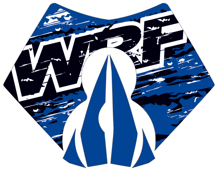 X2 Graphic sticker in blue/black/white with WRF logo.